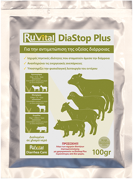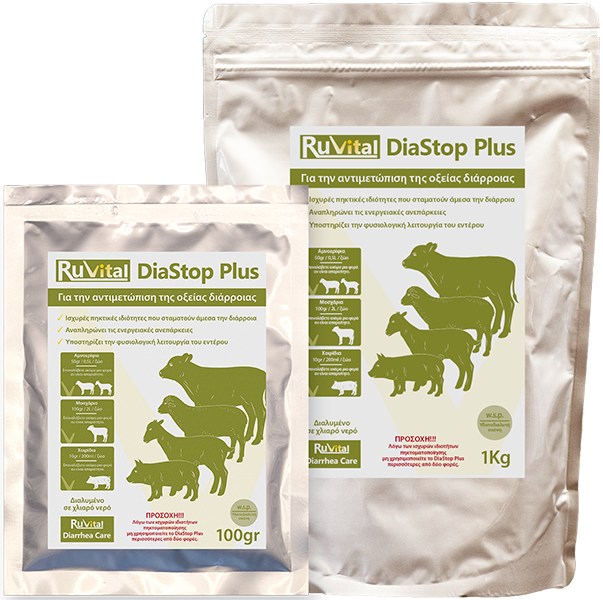 Το DiaStop Plus συμβάλλει στην αντιμετώπιση της οξείας διάρροιας των νεαρών μηρυκαστικών.