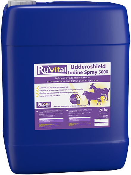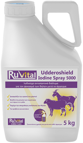 Το Udderoshield Iodine 5000 είναι ένα προϊόν για τον ψεκασμό των θηλών μετά το άρμεγμα.