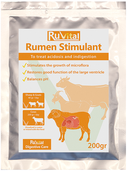 Ruvital Rumen Stimulant 200gr is a powder supplement that has been specifically formulated to restore rumen function by assisting in cases of acidosis and indigestion.